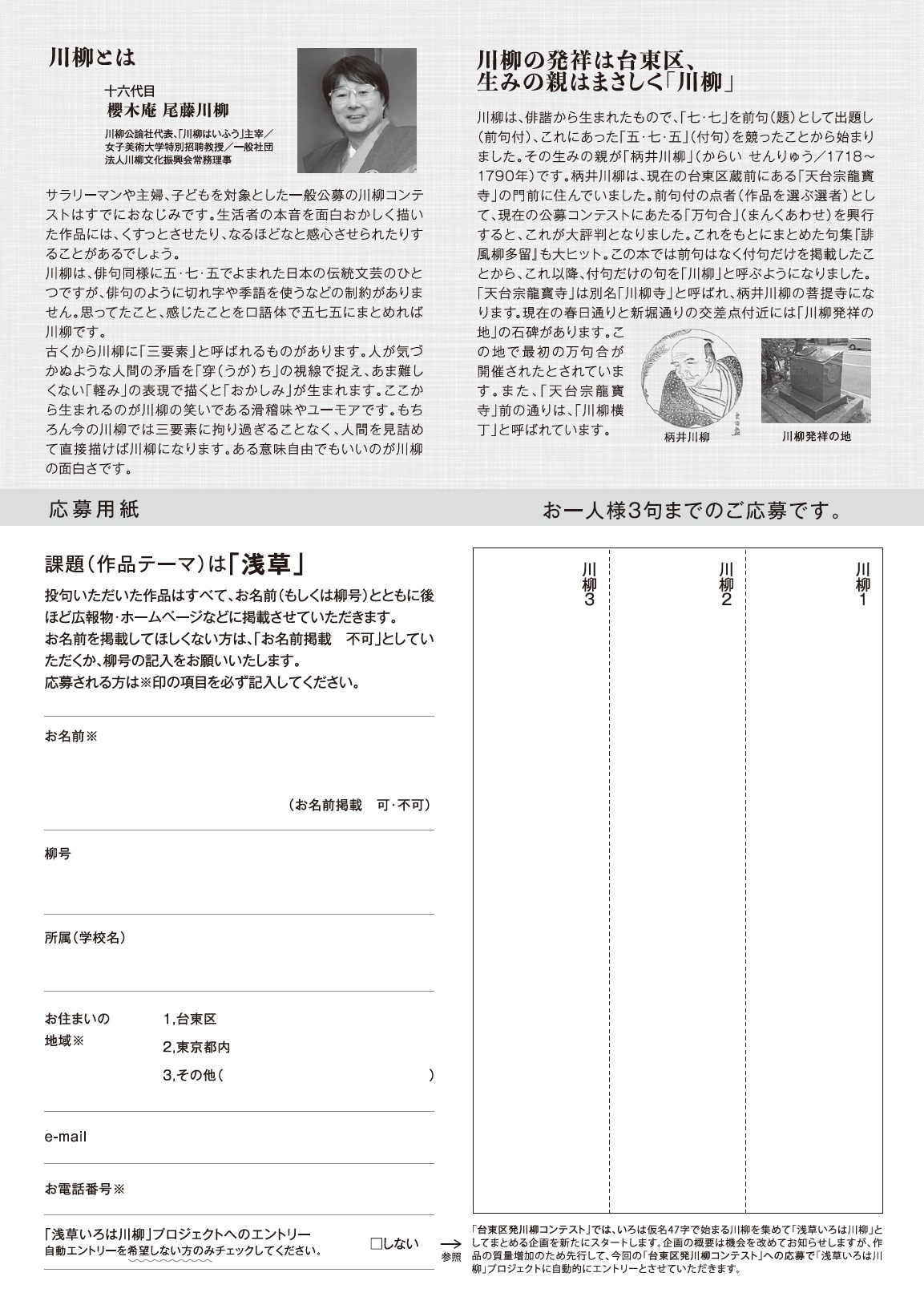 協力:協同組合 浅草商店連合会、台東川柳人連盟
